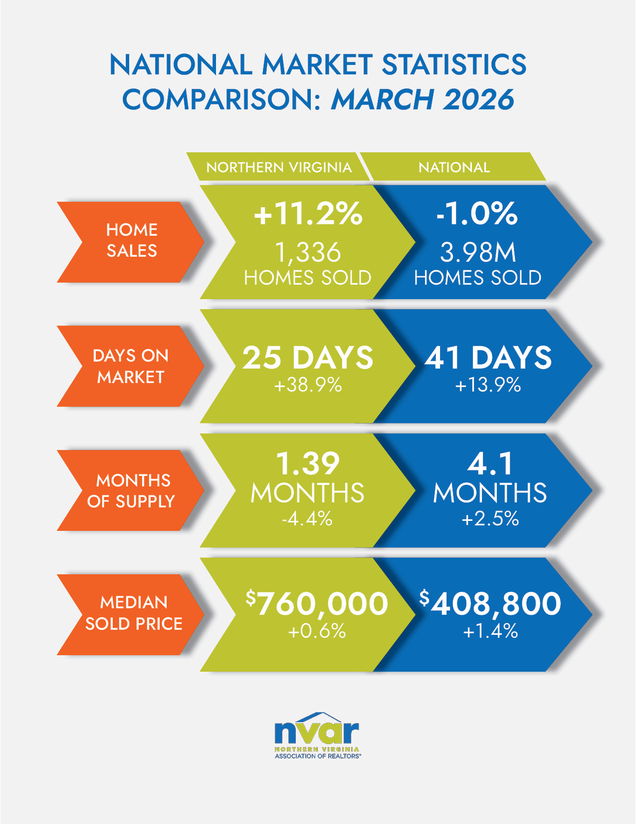 FAIRFAX, Va. (April 24, 2026) — The Northern Virginia housing market continued to demonstrate resilience in March 2026, posting strong gains in sales activity even as national trends signaled a modest slowdown. The region’s performance reflects steady buyer demand and ongoing inventory constraints, according to the Northern Virginia Association of Realtors® (NVAR).