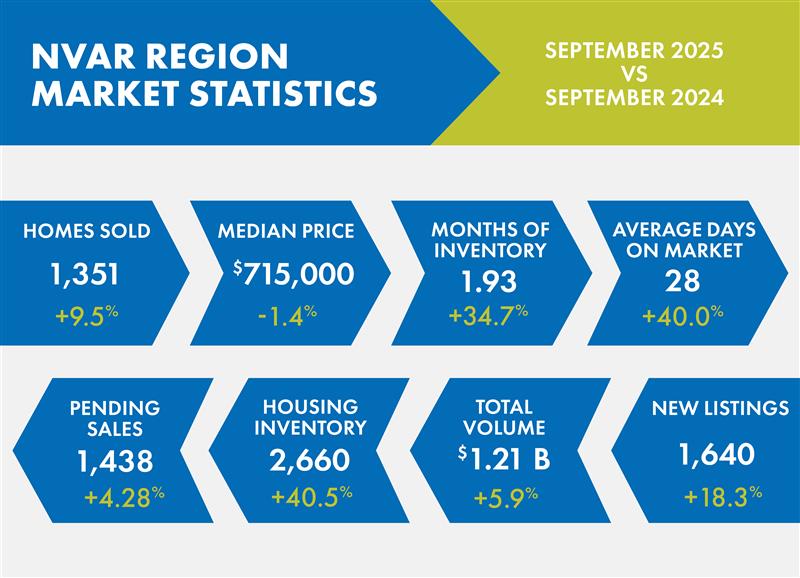 NVAR releases monthly market statistics to deliver local market data for the cities and counties in the NVAR region. Every month, we issue a press release and an infographic that you can share and include in your client presentations.